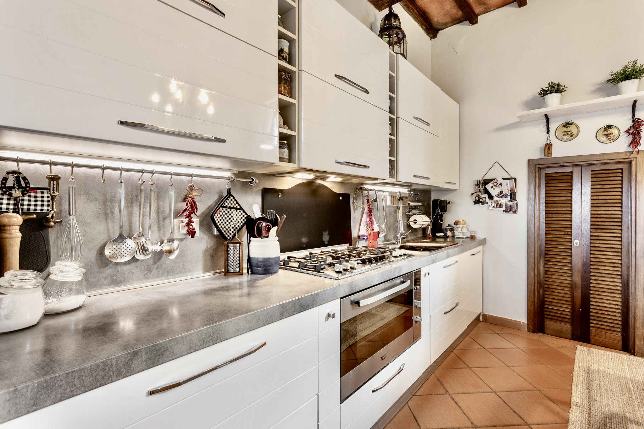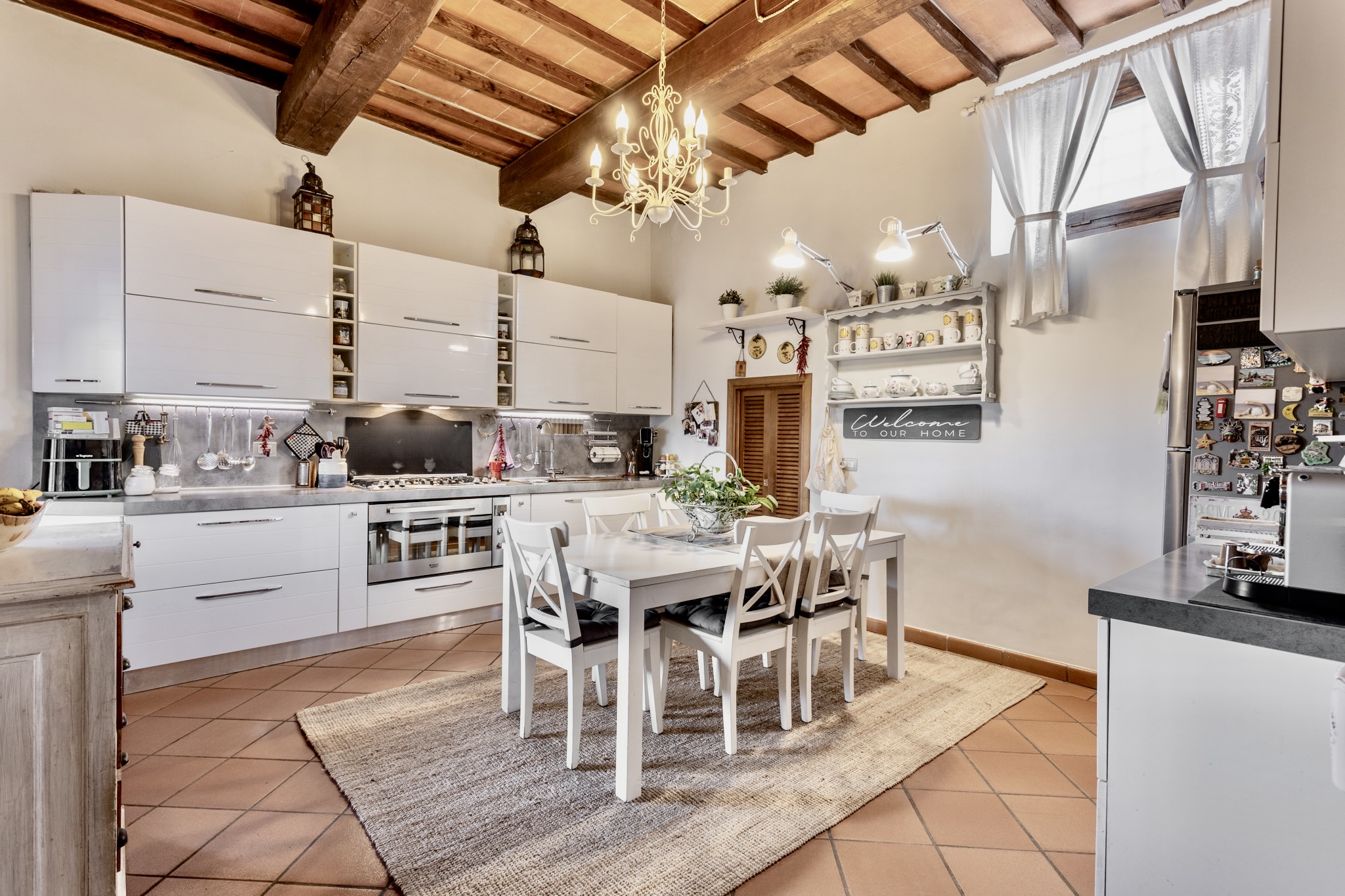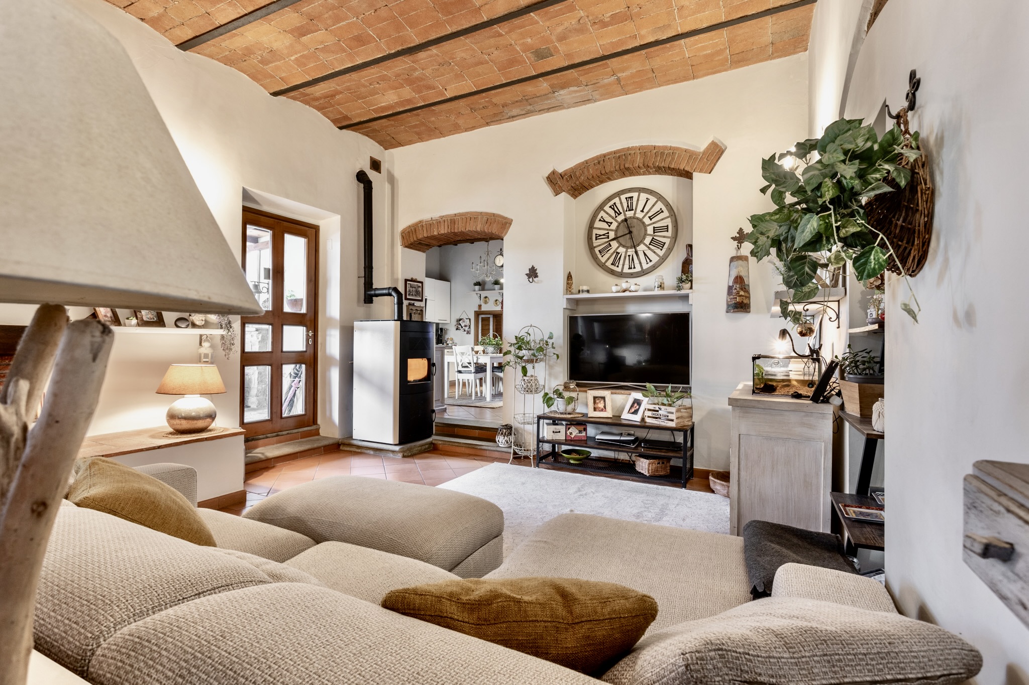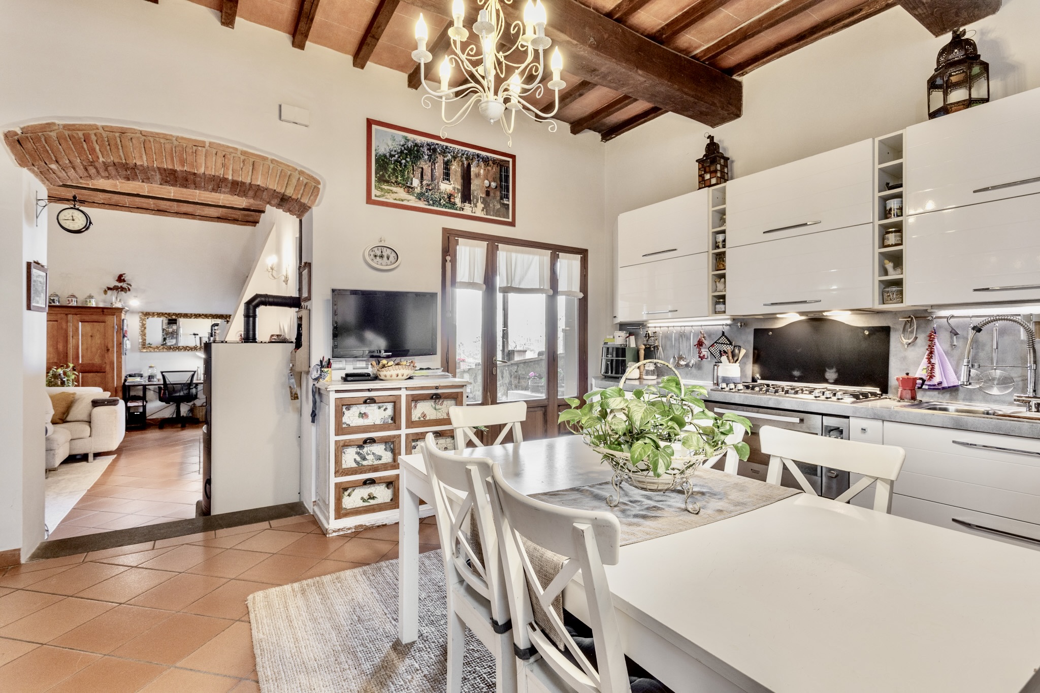 Internamente l’immobile conserva tutto il fascino delle case di campagna toscane: