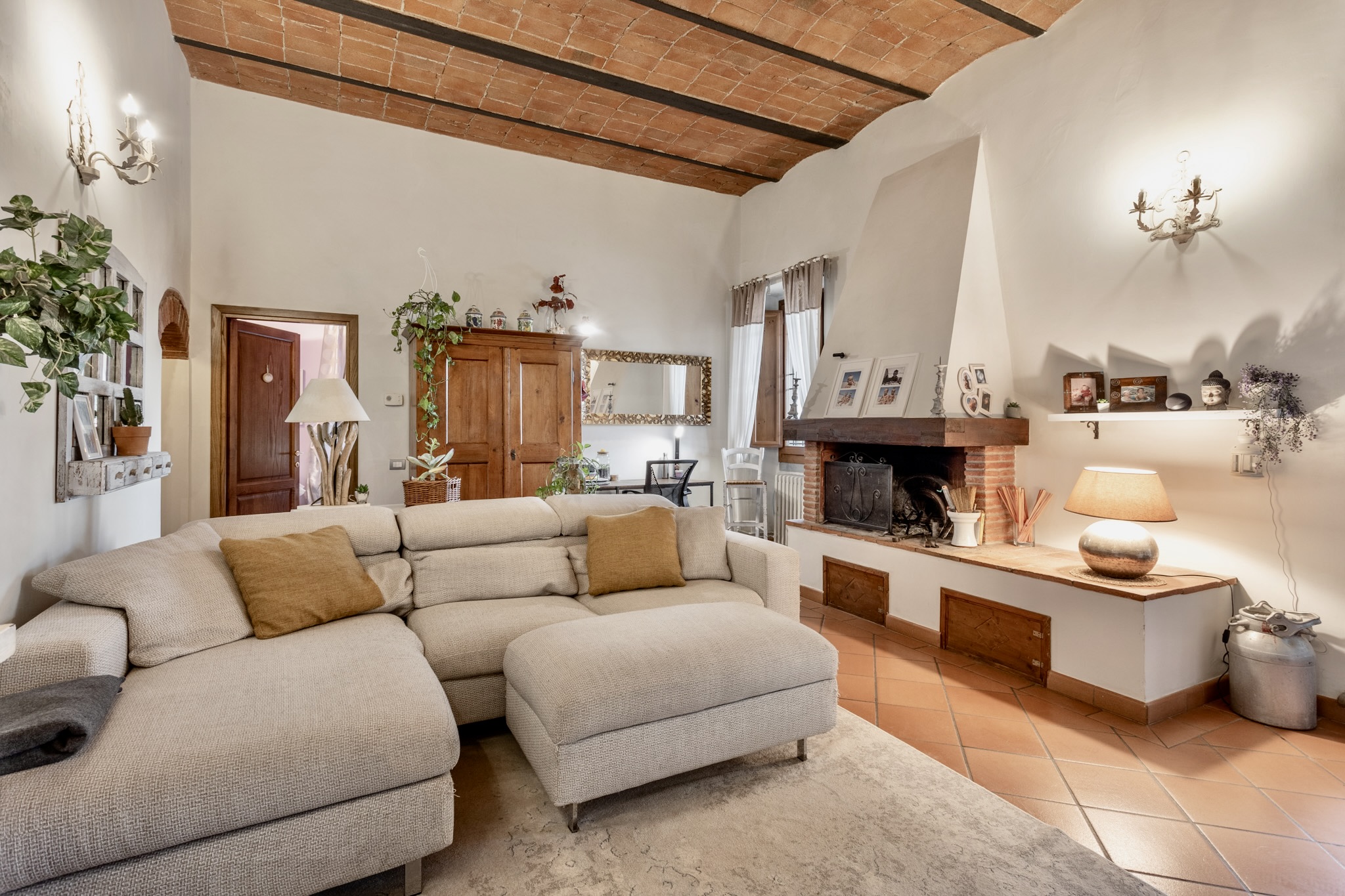 Soffitti a volte in mattoni, pavimenti in cotto, infissi in legno: materiali autentici che raccontano la tradizione